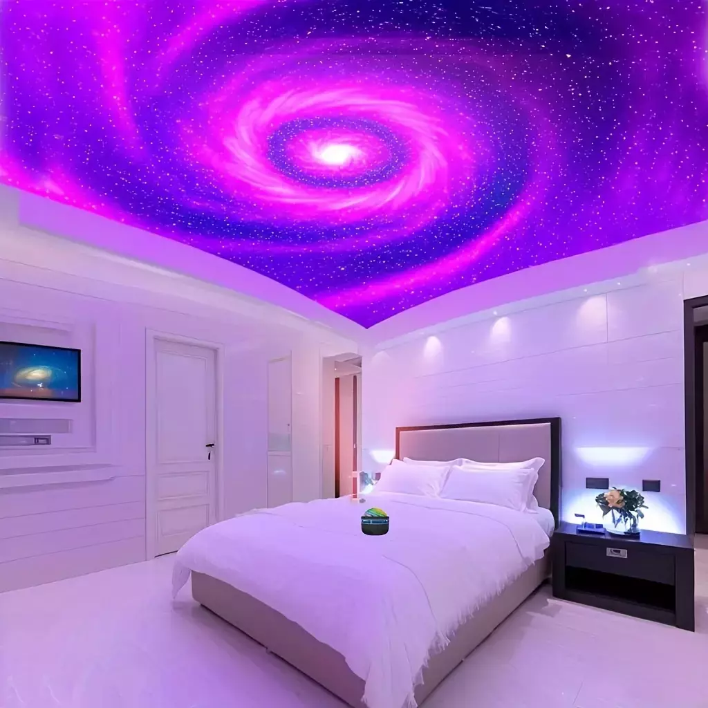 PROJETOR ABAJUR LED AURORA BOREAL NOITE ESTRELADA com controle remoto sincronizado com música.