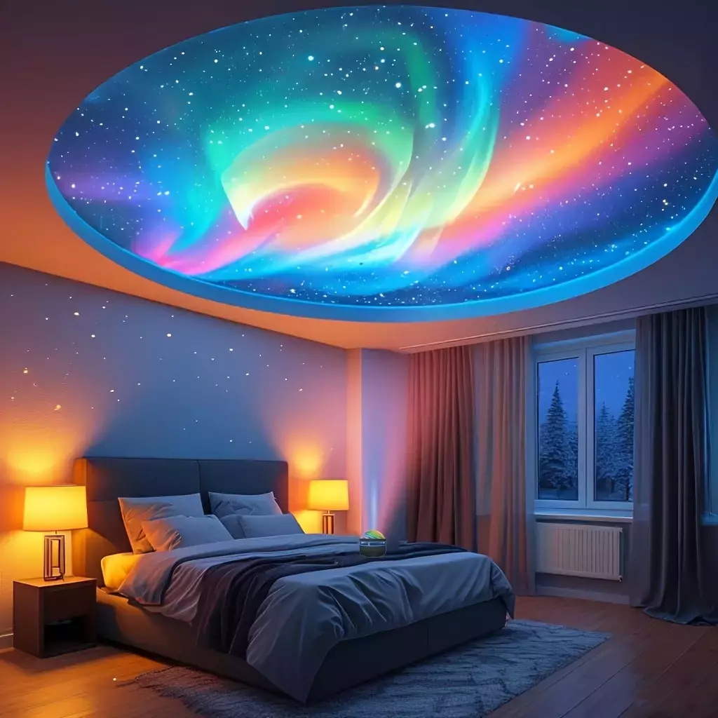 Design inspirado na aurora, pequeno e compacto, iluminação de ambiente, ideal para quarto, festas ou qualquer ambiente.